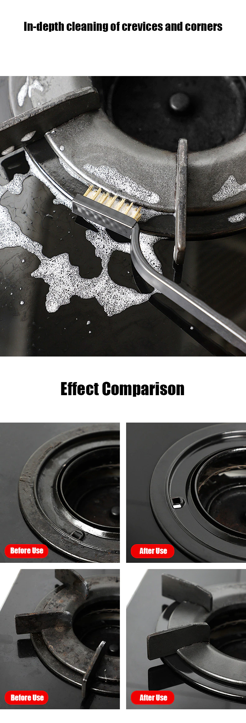 - Stain removal wire brush set powerful stain removal windowsill cracks, sink edge, stove seams, giving you a clean home. Compact design, can effectively remove stubborn stains. Suitable for kitchen, bathroom, gas stove, faucets and other corner. The polishing pads pinpoint stain removal in difficult corners tough brass bristles easily scrub away trapped dirt